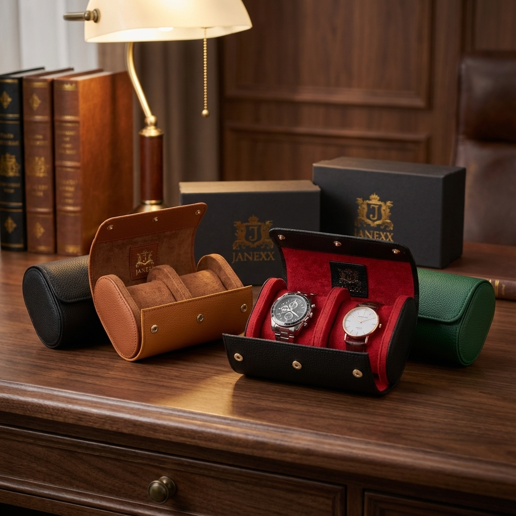 Janexx Premium Leder Uhrenetui für 2 Uhren
