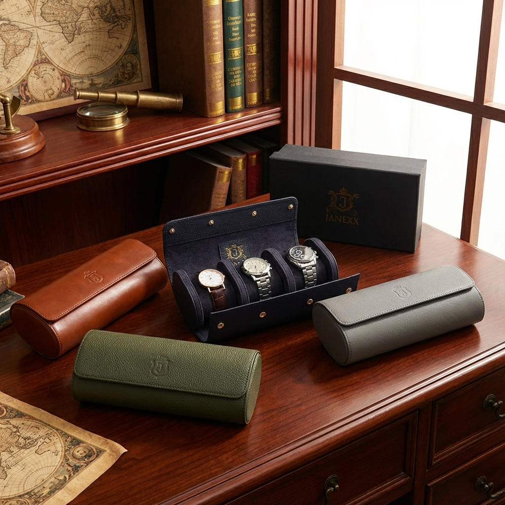 Janexx Premium Leder Uhrenetui für 3 Uhren